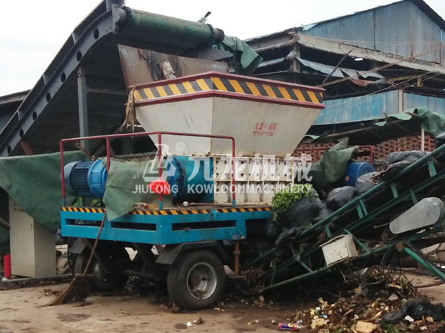 移動(dòng)式垃圾破碎現(xiàn)場(chǎng)